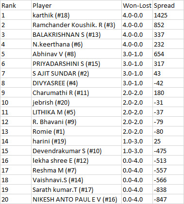 Final Standings of Intercollegiate Scrabble Tournament at Vivekananda College on 6/9/24